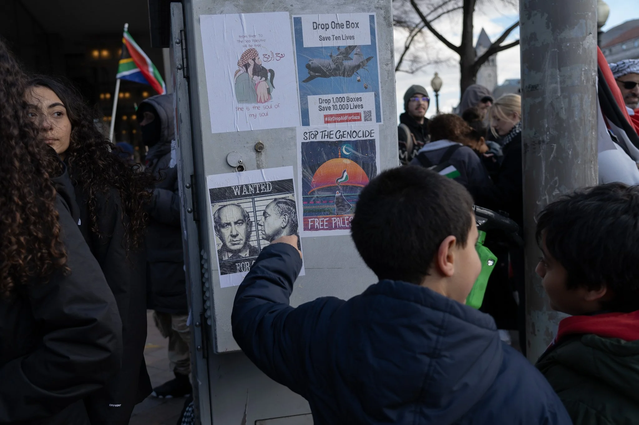The following images showcase everything from massive rallies outside the White House and the Israeli Embassy to small-scale protests outside local venues and businesses.